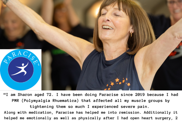 Paracise™ offers an entry point to the millions of people who would benefit physically and mentally from lower intensity exercise. Ideal for those who find regular fitness classes too demanding, or who haven’t exercised for a long time, or who are coming back from injury. It may be accessible to those with a wide range of health conditions such as arthritis, fibromyalgia, bad backs etc.